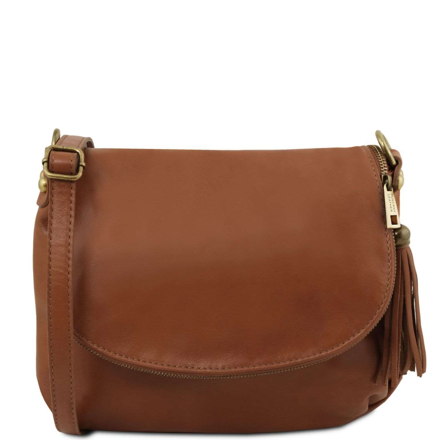 TL Bag - Sac bandoulière besace en cuir souple avec pompon - Cannelle (TL141223)