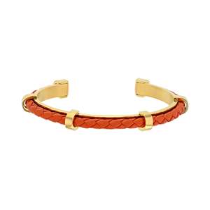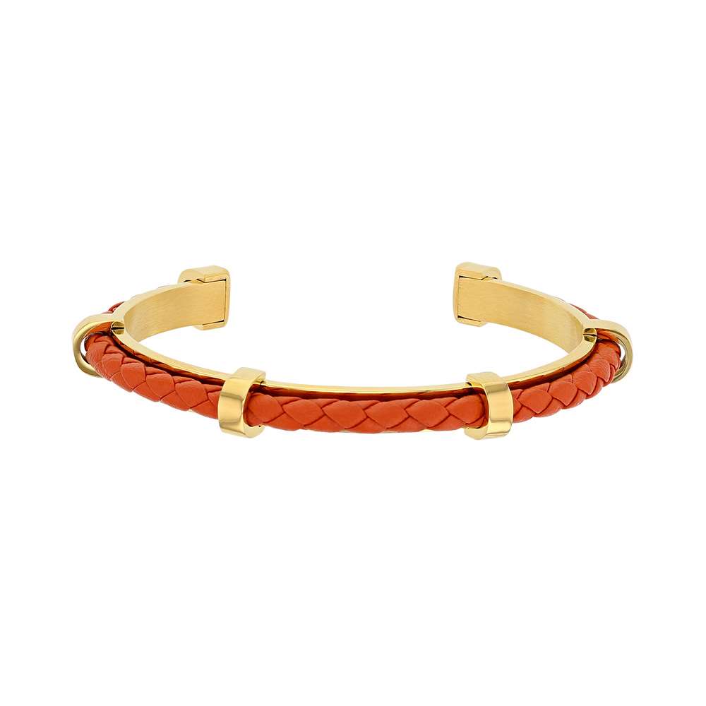 Bracelet ouvert en acier doré avec un cordon synthétique couleur corail (318028D)