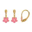 Boucles d'oreilles puces fleur en émail rose et Or 750/1000 pour enfant (303103)