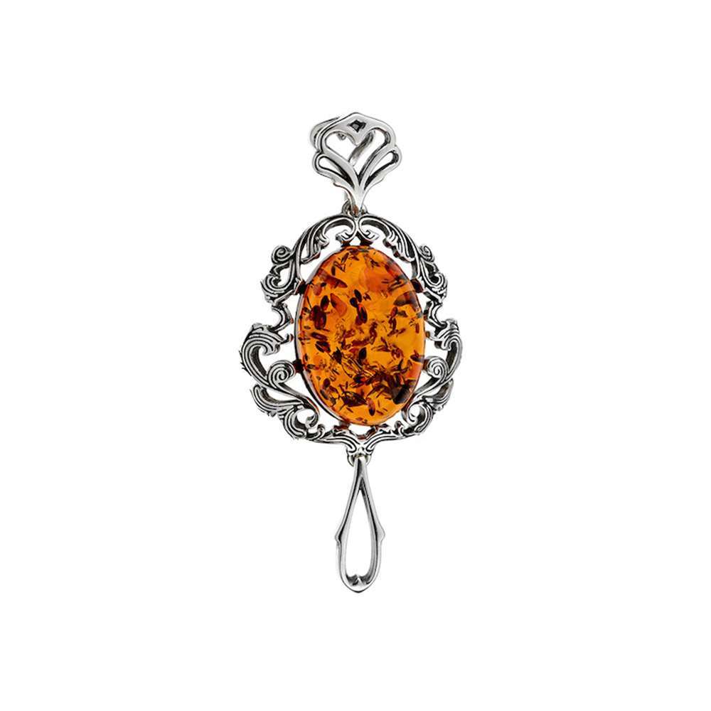 Pendentif armature style baroque pierre Ambre et argent 925/1000 rhodié (31610527)