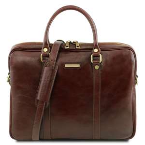 Business de chez 'Tuscany Leather' (Ref: 1283_1_1) - Composition: Cuir pleine fleur avec un tannage végétal, tamponné à la main, Textile en coton - Fonctionnalités: Structure souple, 1 compartiment - Partie intérieure: Poche à l'intérieur avec fermeture éclair, 2 Poches - Bandoulière: Bandoulière réglable, Bandoulière amovible, Bandoulière en cuir - Format: Il peut contenir format A4 - Parties métalliques: Finitions en nickel, Finitions laiton vieilli - Fermeture: Fermeture glissière - Accessoires: Sac protecteur - Dimensions: 7 x 37 x 28 cm - Poids: 0,9 kg - Garantie fabriquant 2 ans - Fabriqué en Italie