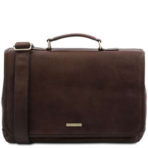 Mantova - Cartable TL SMART multi compartiments en cuir avec rabat - Marron foncé (TL142068)